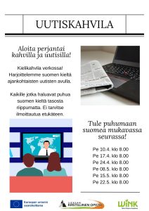 Liity rentoon kielikahvilaan, jossa harjoittelemme puhumaan suomea ajankohtaisten uutisten avulla.